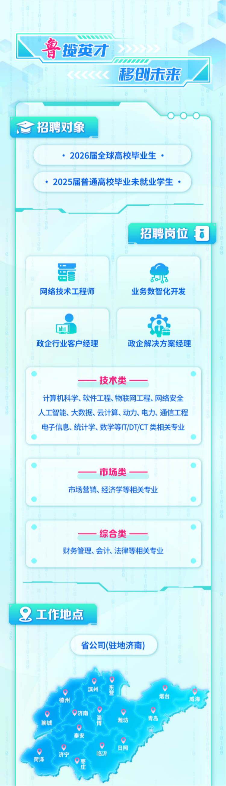 央企山东移动秋季校招开始了!!!全省地市就业均可选择,免费提供笔试和面试通关指导秘籍。报名截止:10月13日。咨询:13905430760(微信)程总。